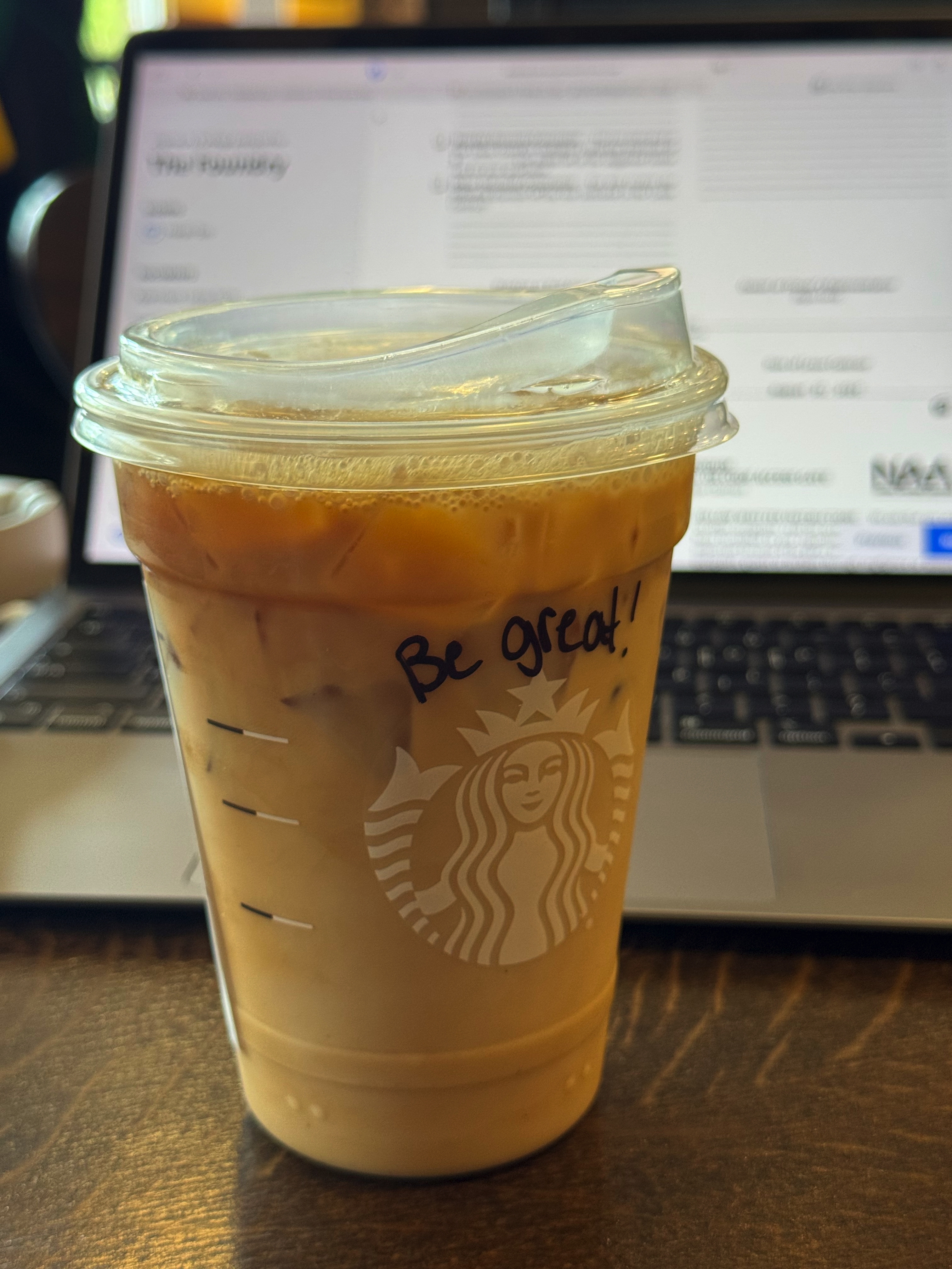 이 옆에는 스타벅스가 있는데, 스타벅스에서 커피를 사면 아메리카노가 아니면 컵에 글씨를 써서 올려주더라. 정확히 말하면, '글씨를 미리 쓴 컵'에 담아 주는 거겠지만, 가끔 감동을 받을 때가 있다. 이런 말에도 감동을 받는다는 것은 내가 뭔가 힘든 것 같다.