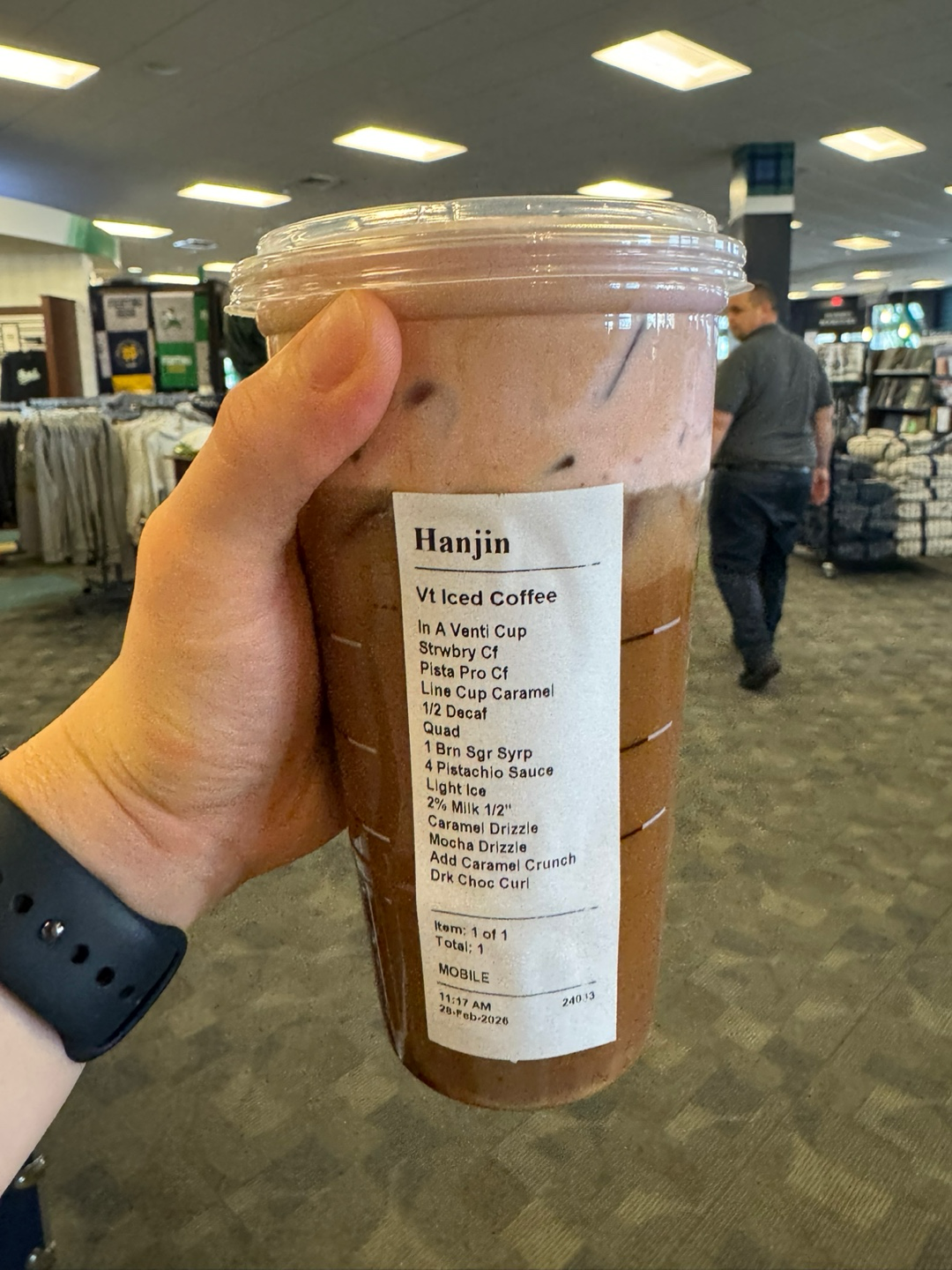 미국 스타벅스는 결제하는 음료의 가격마다 star를 적립해주는데, 100 star는 '오늘의 커피'가 무료고, 200 star는 커스텀 커피가 무료이다. 300, 400 star도 있음. 그런데 100 star 를 써도 그 위에 어떤 토핑들을 추가하더라도 오늘의 커피가 베이스라면 다 무료다. 저렇게 주문했던 예시가 한창 트위터에서 유행했기에 따라해봤다. 솔직히 개맛있었고, 바리스타들도 웃겨했기에 재밌었지만 한 번이면 족할 듯 하다.